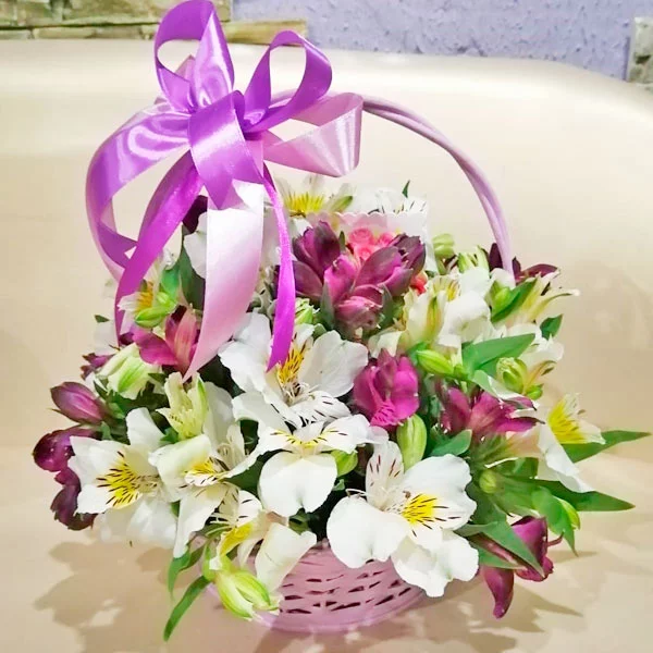Большое спасибо за прекрасную композицию! Корзиночка чудесная! Альстромерии сохранили свежесть долго. Качеством цветов и сервисом остались довольны.